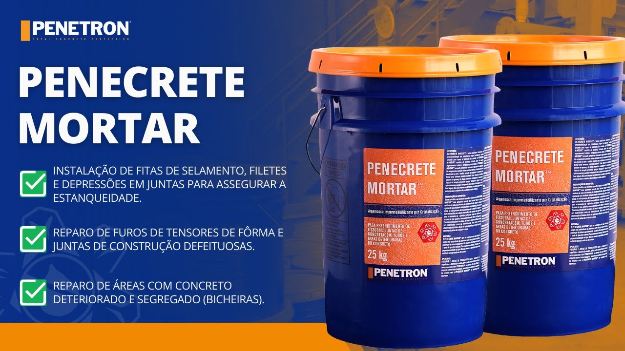 A argamassa PENECRETE MORTAR pode ser aplicada em conjunto com o sistema WPP da Penetron para:
